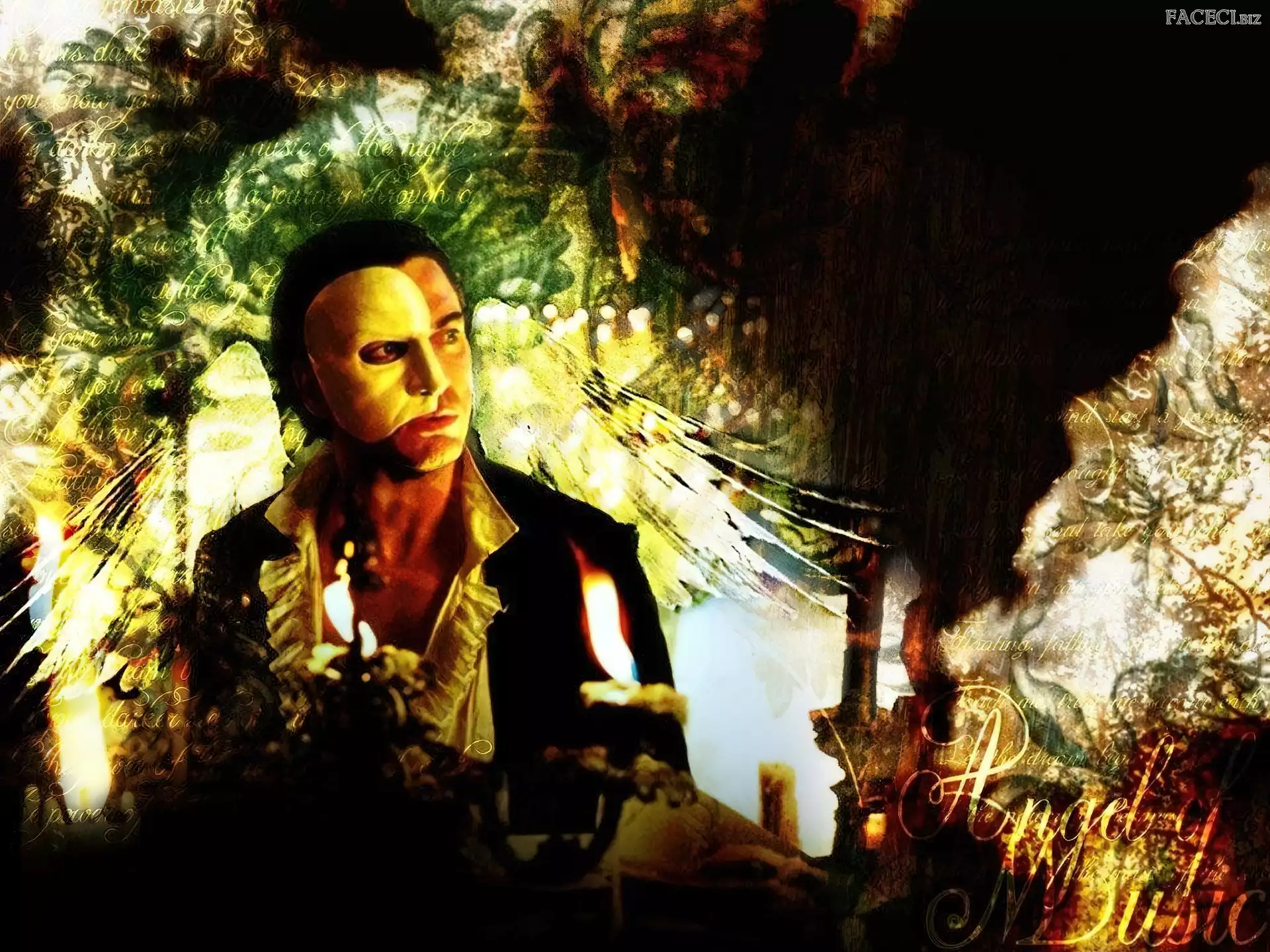 świeczka, maska, Gerard Butler, Phantom Of The Opera, biała - faceci.biz
